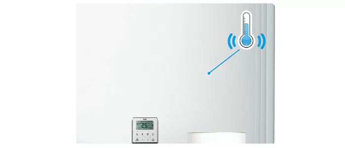 Благодаря функции Следуй за мной внутренний блок реагирует на температуру, измеряемую датчиком температуры, встроенным в проводной контроллер, а не датчиком температуры в самом внутреннем блоке, поэтому температура измеряется ближе к пользователю, а не на высоте потолка или пола.
