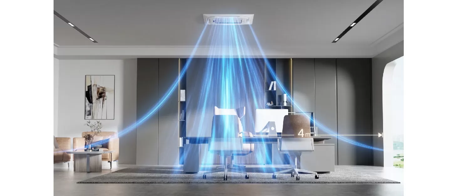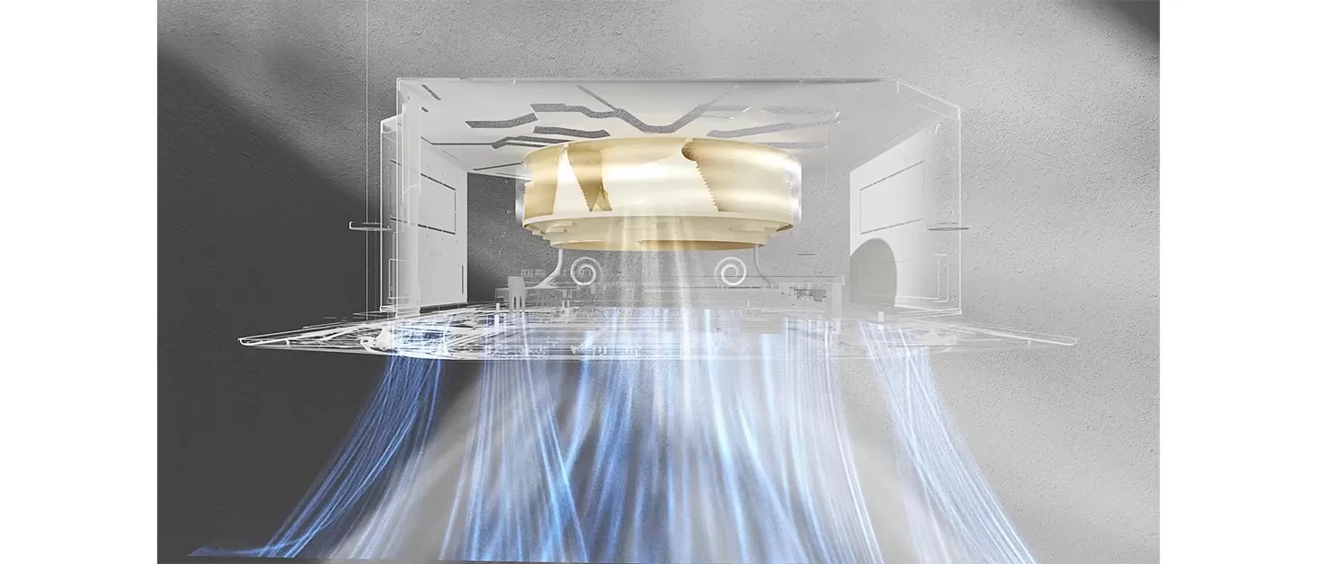 Круглая панель потока позволяет воздуху распространяться в 360° направлении, и распределение температуры становится более равномерным.