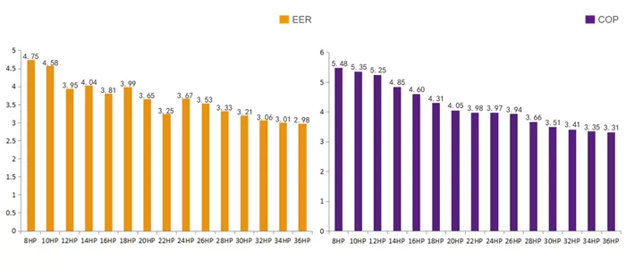 EER для охлаждения достигает 4,75, а COP для обогрева - 5,48 в категории 8HP.