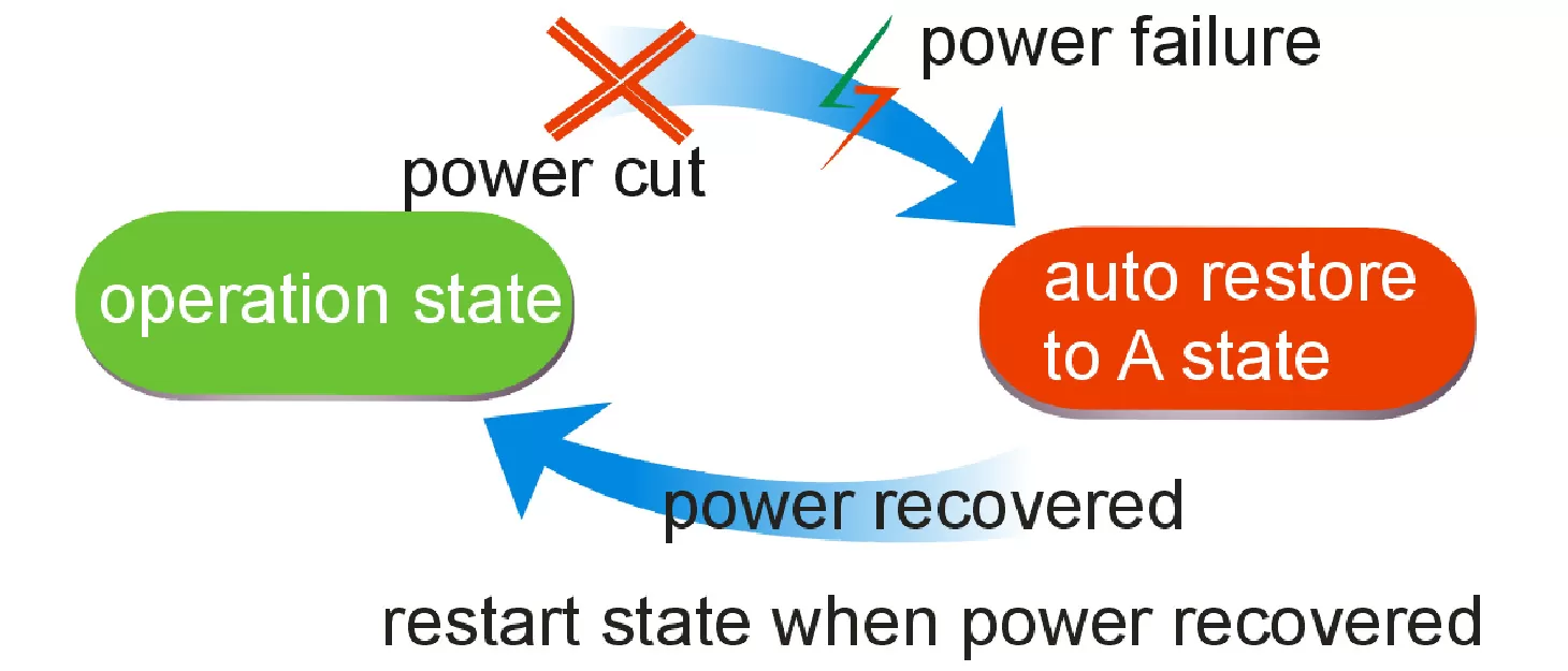 Восстановление прежнего рабочего состояния при восстановлении питания, без необходимости перезапуска устройства вручную.